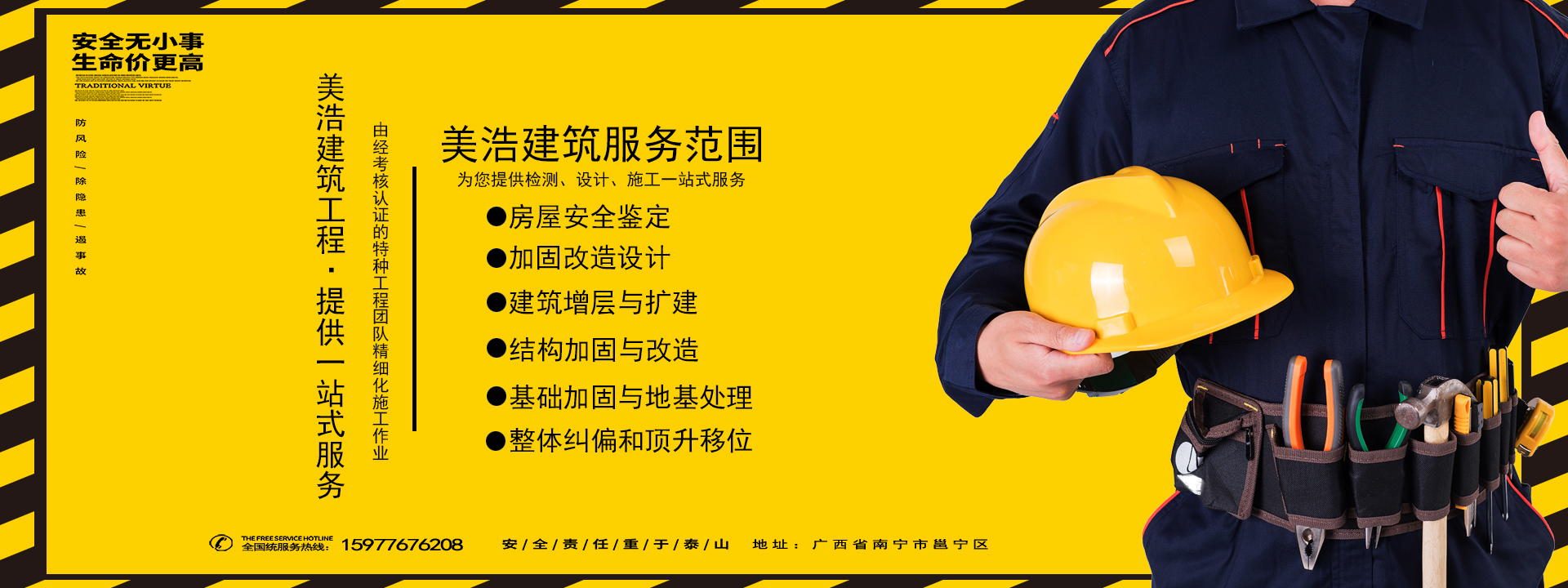 大多數(shù)老板在需要做房屋加固的時候,心中都會產(chǎn)生這樣的疑慮:靠譜的加固公司去哪找?市面上的加固公司實在太多了,想要短時間內(nèi)找到一些靠譜的公司確實有些困難。那么廣西房屋加固公司具備什么條件呢?這邊跟您推薦一下廣西美浩建筑工程有限公司,該公司實力雄厚,并且有所保證。下面就跟大家講講。一、選擇客戶好評多的公···